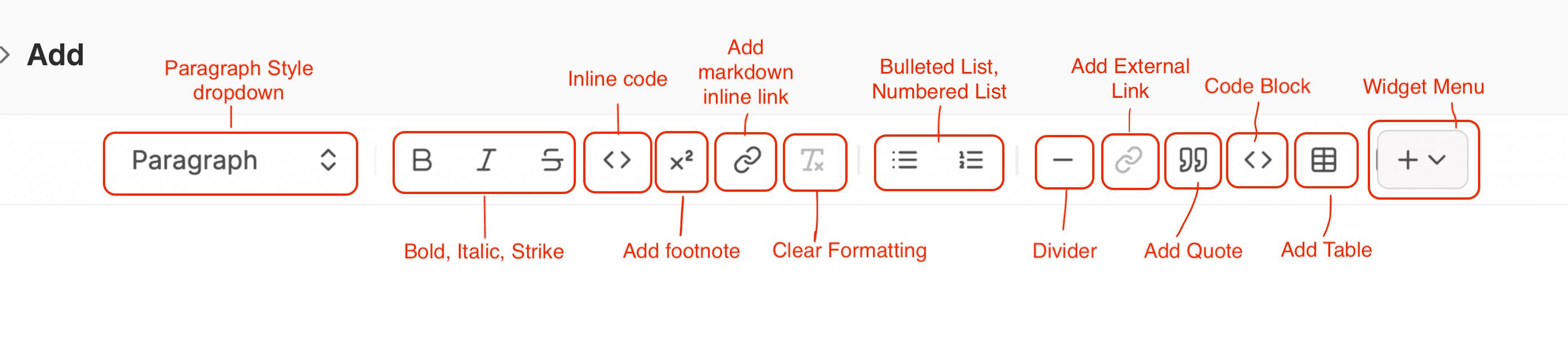 Bold, Italic, Strikethrough - these function the same as in other text editing software.