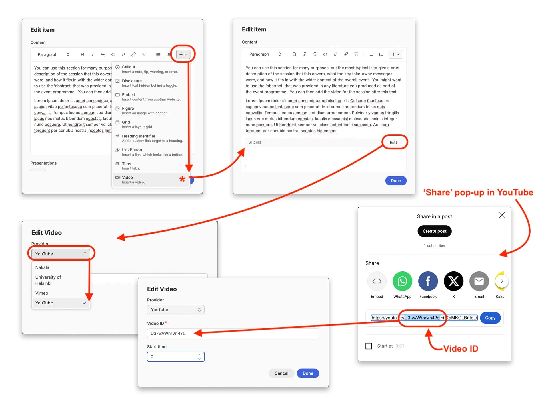 The ‘Video’ option allows you to embed a video within the content of the pathfinder resource you are writing. This is particularly useful if you want to embed a video to illustrate or demonstrate an issue or provocation.